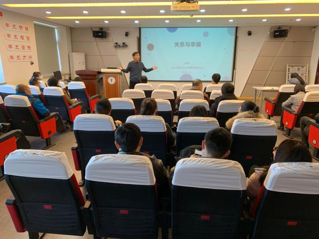 Zhang Chi, deputy director of the school's Psychological Quality Education Center, gave a psychological counseling lecture on "relationship and happiness" for all staff. Starting from the analysis of the relationship between the two systems of human beings, Zhang Chi analyzed the fundamental problems of human beings and told us that self-comparison can improve happiness by accepting and integrating family recognition and social recognition.