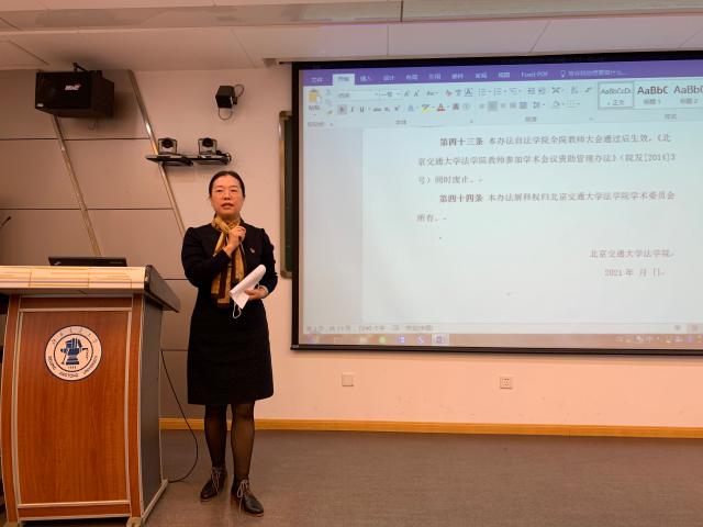 The law School held a faculty meeting on the afternoon of November 30th, during which psychological counseling was conducted for faculty members, relevant documents of performance management were passed, representatives of the teaching congress were by-elected, and education on ideology and safety management was carried out.