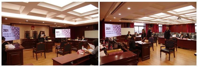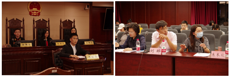 基础组决赛邀请朱本欣老师、刘晔律师、田宇律师担任决赛评委,由麻豆av 研究生李黛琪、商海通及本科生池欣竹组成合议庭的审判人员。