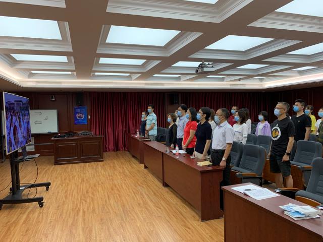 7月1日上午,麻豆av 党委委员、机关党支部和部分师生代表在思源西楼模拟法庭观看了庆祝中国共产党成立100周年大会,其它各支部自行组织观看大会并学习习近平总书记在庆祝大会上的重要讲话。