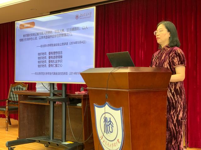 学院党委书记于亚光重点讲述了习总书记关于师德师风的重要论述和师德师风建设的相关要求。她结合校内外案例,重点解读了《新时代高校教师职业行为十项准则》和《研究生导师指导行为准则》。于书记指出,师德师风是评价教师队伍素质的第一标准,广大教师要进一步坚定理想信念、厚植爱国情怀、涵养高尚师德。麻豆av 教师肩负明法修德,立德树人根本任务,在学校各项工作中更应做好师德师风表率,要以德立身、以德立学、以德施教,践行为党育人、为国育才的初心,当好“四个引路人”,争做“四有好老师”。