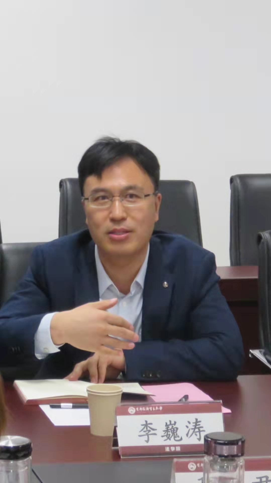 李巍涛院长致词表示非常高兴有机会来到首经贸大学麻豆av 交流学习,对本次调研期待已久。在听完米书记和张院长的介绍后,感觉收获满满,认为首经贸麻豆av 的很多举措非常务实、值得借鉴。目前,博士点已经成为北交麻豆av 发展壮大的瓶颈,首经贸麻豆av 博士点申报和建设的成功经验对我们来说显得弥足珍贵。
