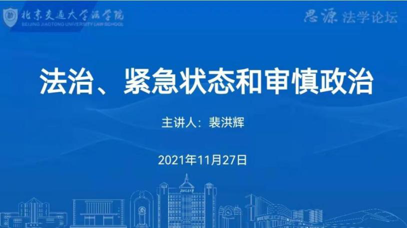 裴洪辉老师围绕“法治、紧急状态和审慎政治”的主题,结合时事热点、博通古今中外,分享了突发疫情后自己对法治与政治的反思,从紧急状态的规范立场、政治存在论立场、理论谱系、程度性视角四个方面,介绍了现代恐惧政治、施米特例外理论、审慎政治等内容,并突出强调了极端紧急状态下意志的重要性。裴老师还结合“必要性无法可依”,深入阐释了决断和规范的关系,全面地论述了法治理论所具有的充分的可建制性。