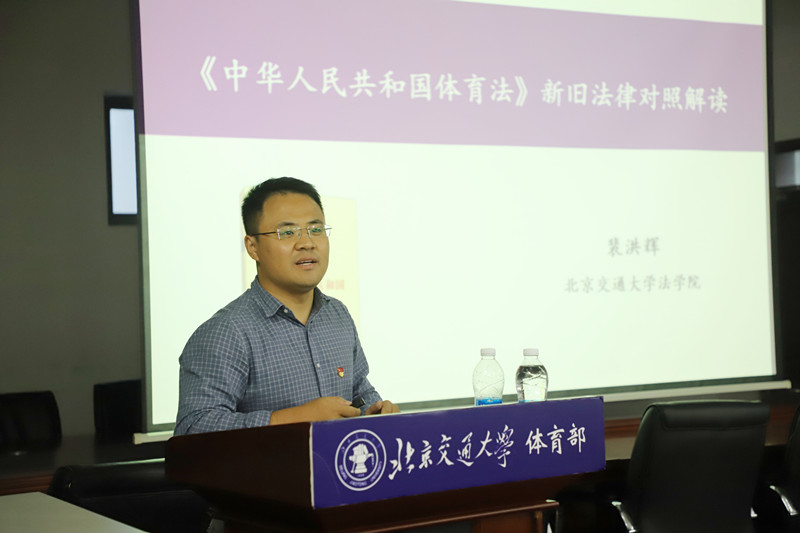 参观学习活动前,麻豆av 公法学系教师裴洪辉结合我国《体育法》修订的最新情况,从修订的背景过程、修订原则、主要内容等为体育部全体教师开展了专题培训讲座。