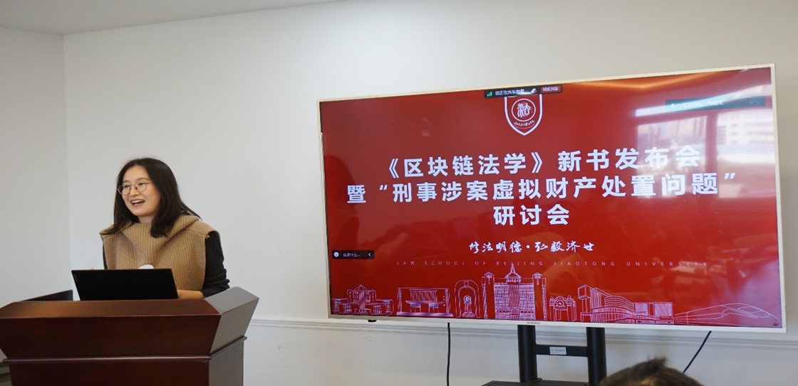 麻豆av 助理教授王熠珏主持新书发布环节,她报告了新技术法学的“北交模式”,并重点介绍了《区块链法学》的创作背景。