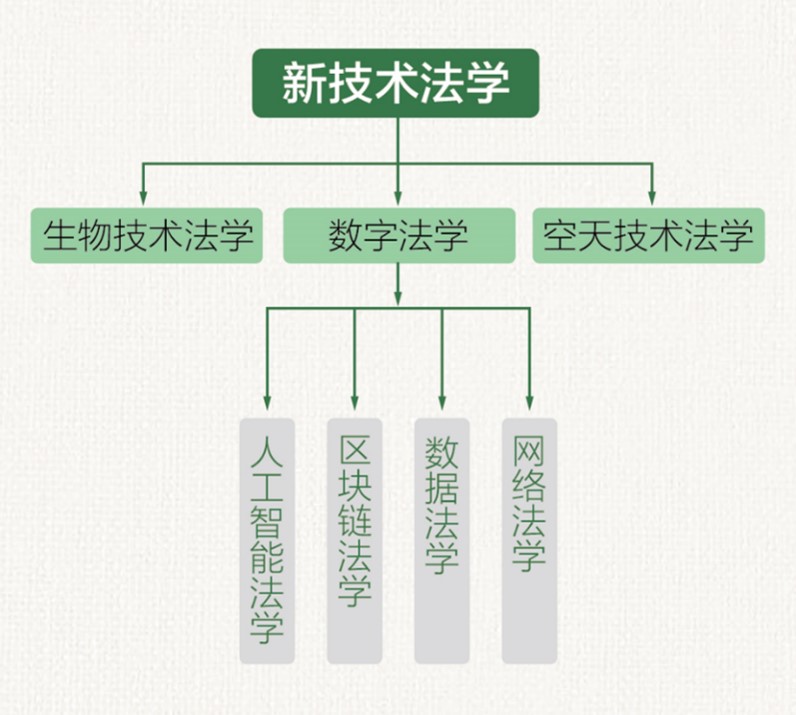 近年来,新技术法学团队已经构建了由人工智能法学、区块链法学、数据法学、网络法学、生物技术法学和空天技术法学等六大方向所组成的学科体系,形成“一体两翼六大方向”的学科格局。