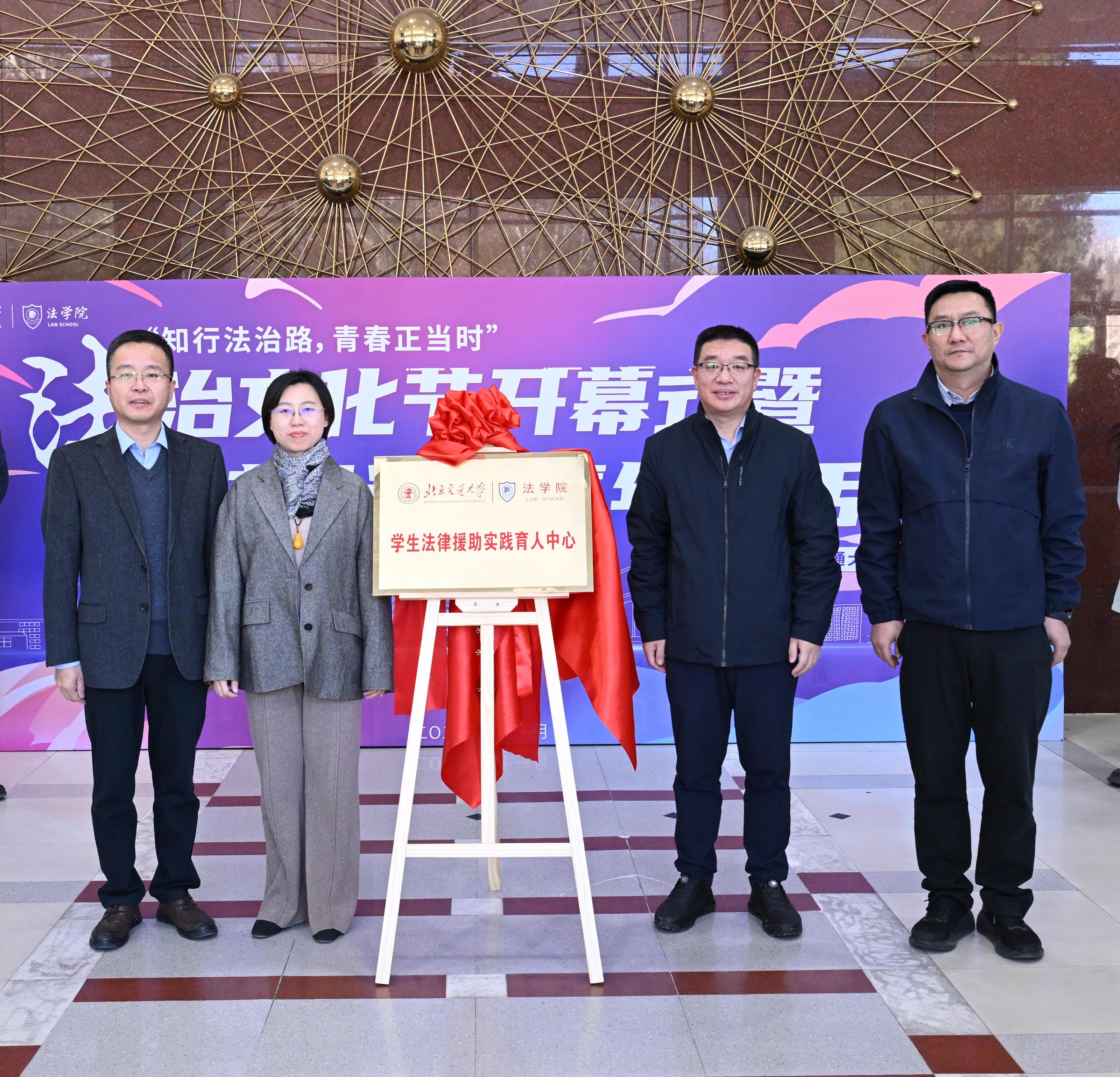 为贯彻落实全国教育大会精神,打造党建引领实践育人新范式,学院依托专业特色,成立了“学生法律援助实践育人中心”。王皓、高永峰、方宇鹏、张立学为中心揭牌。