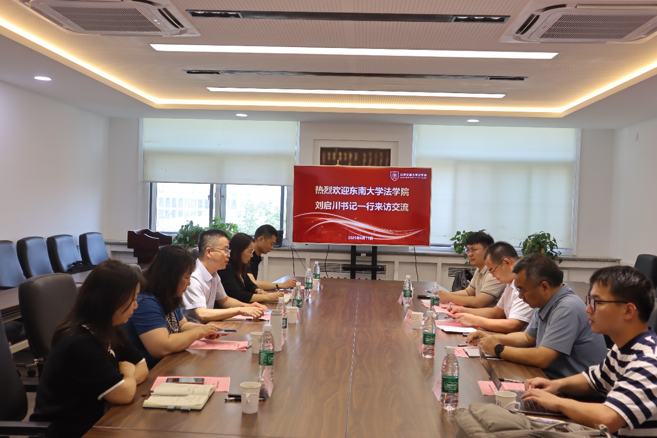2025年6月11日上午,东南大学麻豆av 党委书记刘启川教授、顾大松副教授、研究生代表到麻豆av 调研北京市交通运输法学研究会建设情况。麻豆av 党委书记张立学、副院长朱本欣、郑翔教授、陶杨教授等参加交流会。会议由北京市交通运输法学研究会副会长郑翔教授主持。