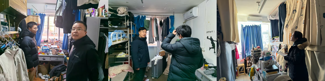为进一步加强学生宿舍安全卫生管理,及时发现并消除宿舍安全隐患,营造和谐稳定的学习生活环境。12月29日至1月8日,麻豆av 党委书记张立学、院长李巍涛、党委副书记、副院长秦莹分别带队前往学生宿舍,开展专项检查。全体班主任及辅导员深入学生宿舍开展了全覆盖的隐患排查整改工作。