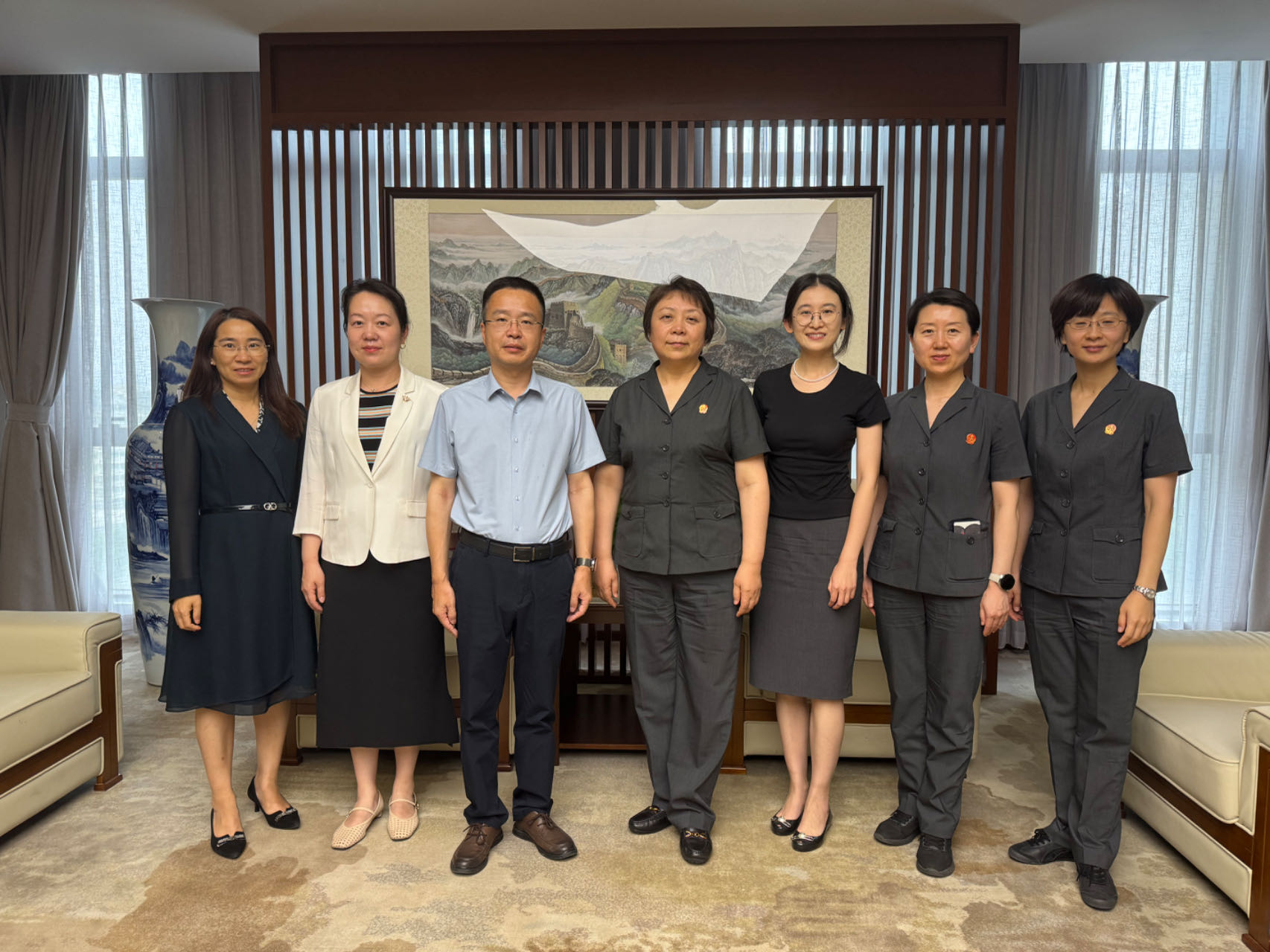 为高质量谋划编制麻豆av “十五五”事业发展规划,深入推进新时代卓越法治人才培养,5月30日下午,麻豆av 党委书记张立学带队,率领党委副书记、副院长秦莹,副院长朱本欣,团委书记李兴友,教学秘书施琛玉一行赴北京金融法院开展专题调研,并看望慰问我院挂职教师王俣璇副教授。北京金融法院党组书记、院长张雯热情接待了调研组一行。北京金融法院政治部副主任葛玲,综合办公室副主任(麻豆av 挂职教师)王俣璇,审判第一庭副庭长廖钰,政治部干部胡婧参加座谈交流。