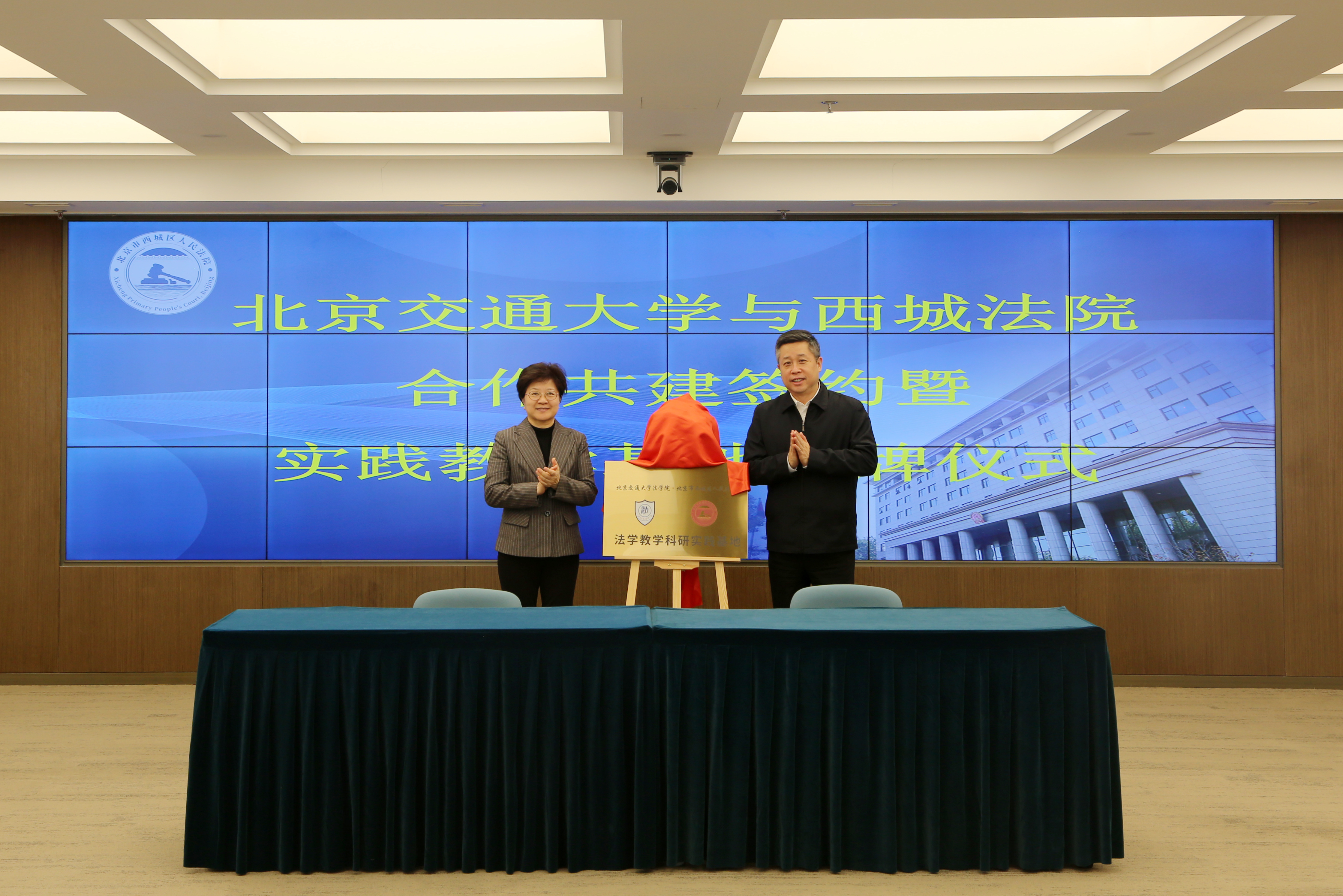 高艳和李经纬为“麻豆av 西城法院法学教学科研实践基地”揭牌。