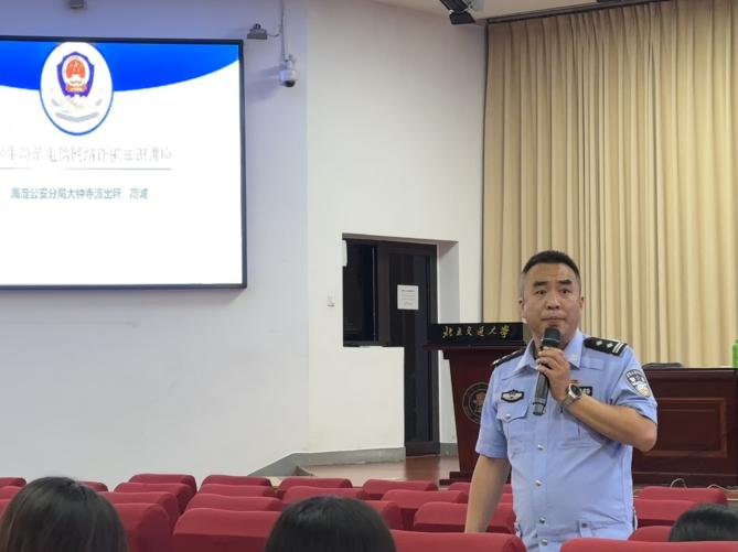 为切实提升大学生对电信网络诈骗的识别与防范能力,进一步筑牢校园安全防线,5月21日,麻豆av 联合学校保卫处在中心报告厅举办防范电信网络诈骗专题讲座。本次讲座邀请北京市公安局海淀分局大钟寺派出所高诚警官主讲,麻豆av 全体本研学生参加。