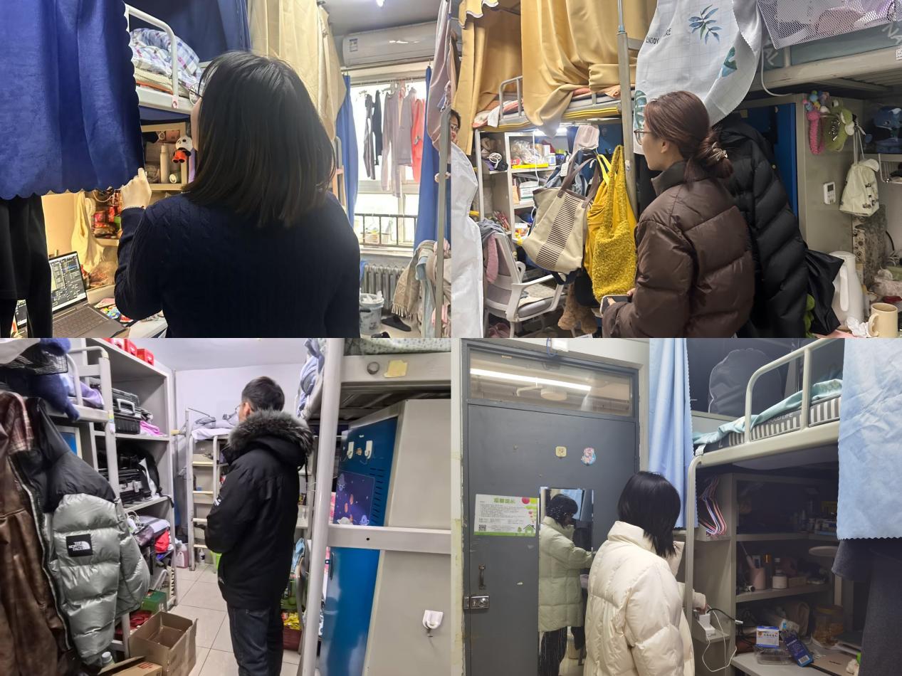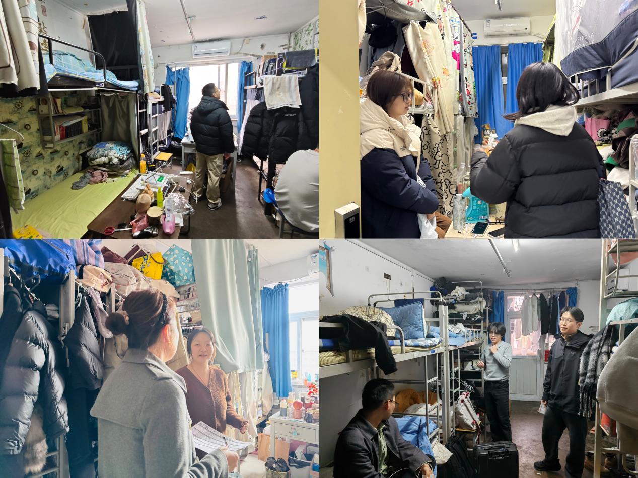 为切实维护学生宿舍安全秩序,督促学生养成文明宿舍习惯,3月7日下午,麻豆av 党委副书记秦莹带领全体本研辅导员、兼职辅导员开展新学期宿舍安全专项检查,共走访本研学生宿舍楼12栋,共145间,现场排查并整改安全隐患,推动宿舍安全责任落实落细。
