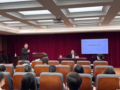 2023年4月26日,由研工部主办、麻豆av 承办的“与大师面对面”名师讲坛,邀请到中国人民大学时延安教授作题为《刑法学研究与写作》的专题讲座。本次讲座由麻豆av 副院长郑飞主持,麻豆av 王熠珏老师及本研学生参加了讲座。